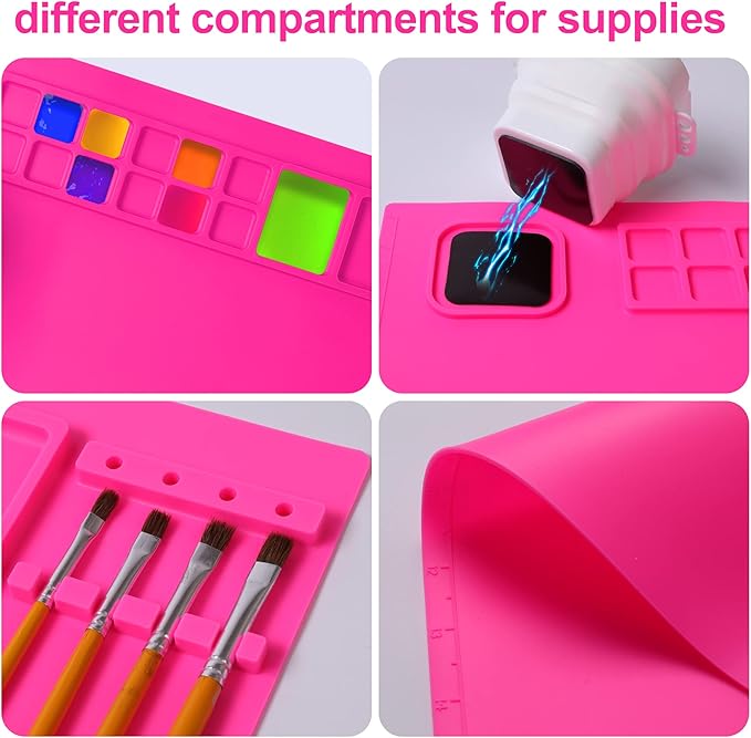 AWOKE Silicone Painting Mat - 20"X16" Silicone Art Mat with 1 Water Cup for Kids - Craft Mat has12 Color Dividers - 2 Paint Dividers (Rose)