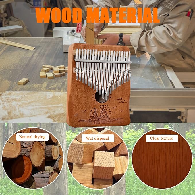 • 【Professional Sound Effect】 The Kalimba 21 keys uses selected mahogany tonewood materials and acoustic shrapnel with traditional technology to ensure a warm and deep sound effect, solid wood structure to give off a full and complete vibration.
