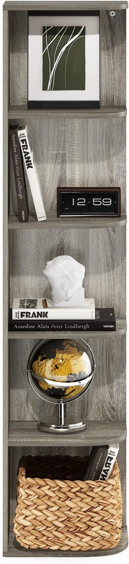 Furinno Pasir 5-Tier Corner Open Shelf Bookcase, French Oak