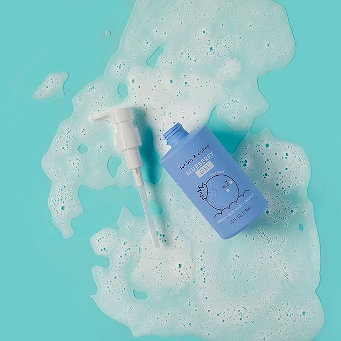 • IT'S THE BERRY BEST. Dabble & Dollop’s 3-in-1 Blueberry Bath Gel captures the sweet, crisp, tart magic of that little round berry from the North. Every dabble of Blueberry Gel is delightfully rich, luxurious, and provides a soft creamy lather for your children. The velvety gel can be used for a bubble bath, body wash or shampoo.
