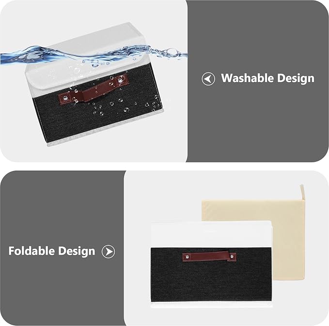 ANMINY Storage Boxes with Lids Washable Decorative Storage Bins Basket with PU Leather Handle Foldable Linen Fabric Storage Cubes Containers for Home Closet Organizer - Black White, Small Size