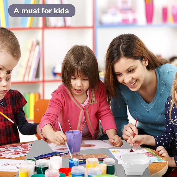 • [UNIQUE DESIGN] - Silicone painting mat has a collapsible attached cup with brush holders on the side and top, built-in paint wells, and brush rests. Keep clean while creating efficiently.