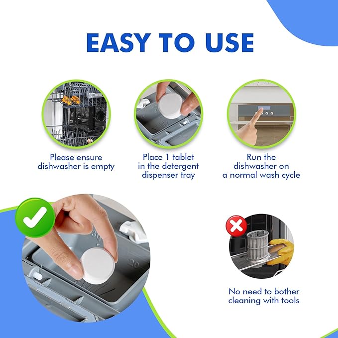 • [MONTHLY MAINTENANCE] Keep your dishwasher clean with the xcleen dishwasher cleaning tablet. Use a single or 2 care tablets per month. Place tablets in an empty dishwasher to restore cleanliness to the machine. You can use it for at least a year or more.