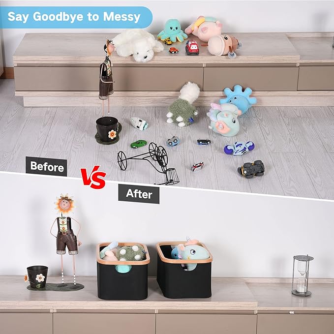 • 【Stylish Appearance】The neutral color and bamboo frame give the fabric storage bins a simple and elegant look. It will look great in the bedroom, bathroom or living room. When you don't know what to give as a gift, it will be a great idea.