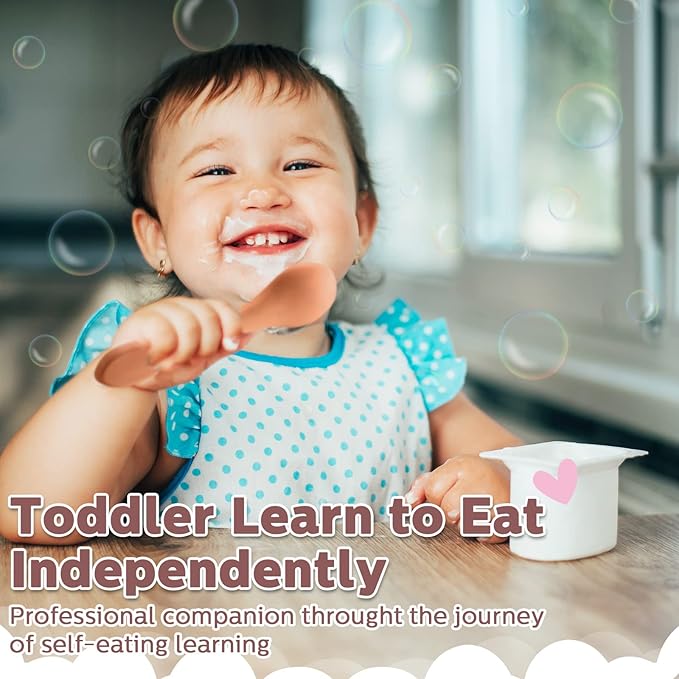 • Easy to clean: owing to the material, the baby self feeding spoons are easy to wash, you can wash them under running water, not easy to deform and wear, they are cleanable and reusable, you can place them in boiling water before use, after finishing eating, you can also put them in refrigerator to store