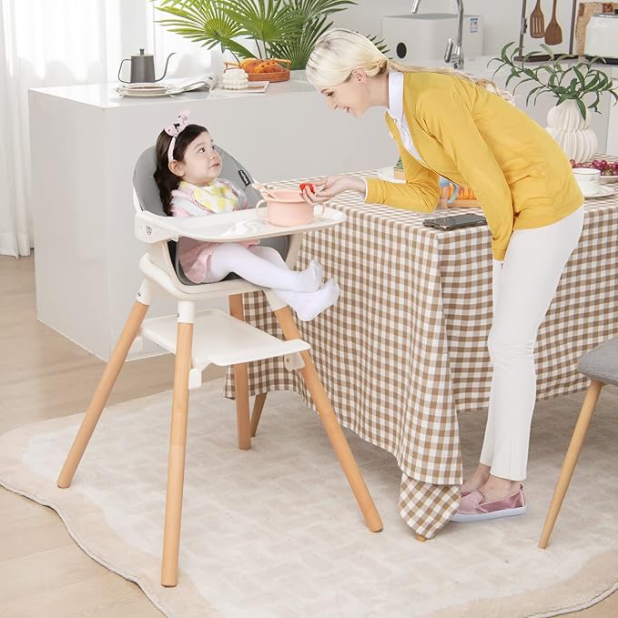 • Easy Assembly & Cleanup: Combing with detailed instruction, this baby high chair is quick to assemble. The beech wood legs are easy to assemble and disassemble with built-in screws and nuts. The seat cushion features a waterproof surface that is convenient to wipe down. And the tray is dishwasher safe for daily cleanup after use.