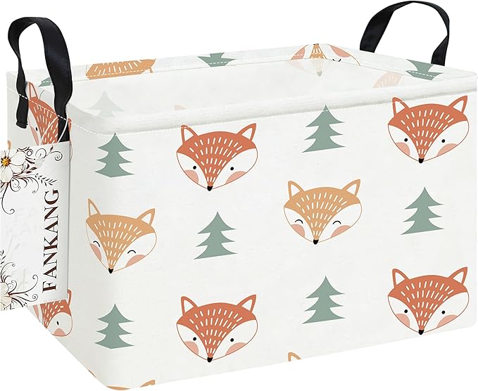 FANKANG Storage Bins, Nursery Hamper Canvas Laundry Basket Foldable with Waterproof PE Coating Large Storage Baskets for Kids Boys and Girls, Office, Bedroom, Clothes,Toys(Rec-Fox )