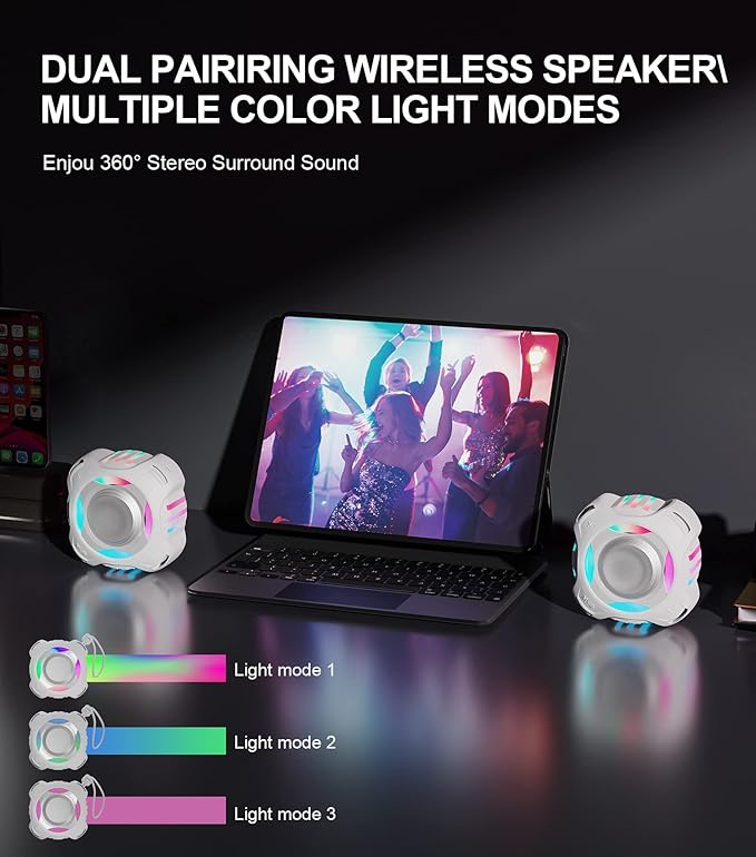 • [Multiple LED Light Modes and A2DP Bluetooth 5.3] This Bluetooth shower speaker has multiple cool LED light modes with light changes at night to make music and life more fun. You can enjoy the LED light show at any time, such as in the shower, bringing you the ultimate audio-visual experience. And this cool and portable speaker is also a perfect gift for parents, men, women, friends or kids.