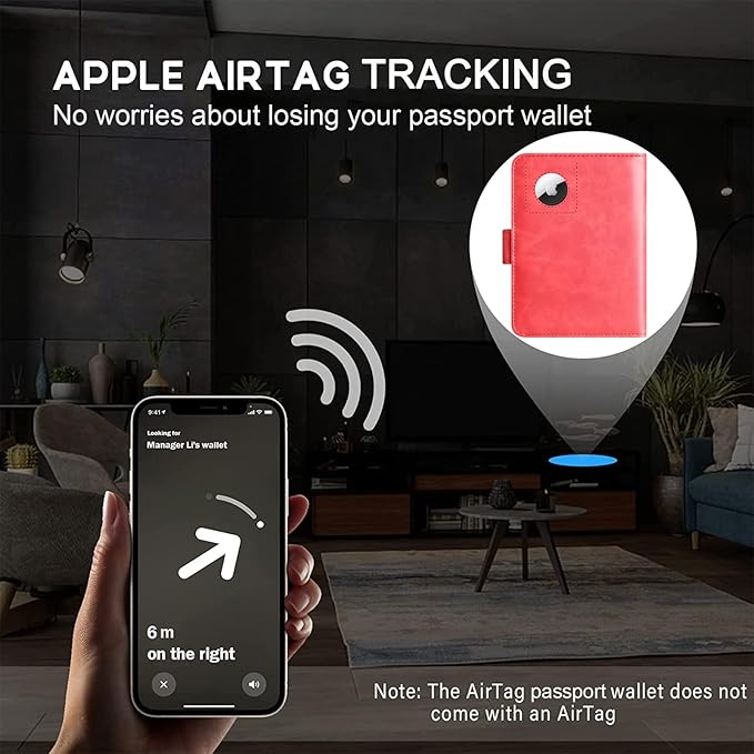 • PASSPORT AND AIRTAG HOLDER COMBO - The built-in holder for Apple Air Tag combine passport wallet and AirTag ideally to make sure you never lose your passport wallet again. Misplaced or lost your passport wallet? Keep track of and see where you last had it alongside friends and devices in the Find My app. The AirTag passport wallet does not come with an Airtag.