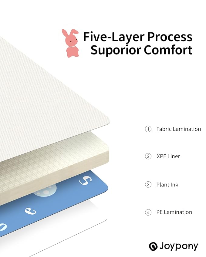 • [DOUBLE SIDE CLOTH & XPE] - When it comes to your baby's playtime, versatility is key. That's why Joypony baby play Mmat features two different surface materials: a plush cloth side for cozy comfort and a durable PE side for easy cleaning and long-lasting use. Switch between these surfaces to suit your baby's needs.