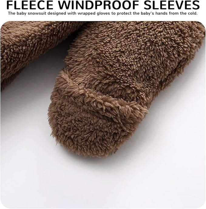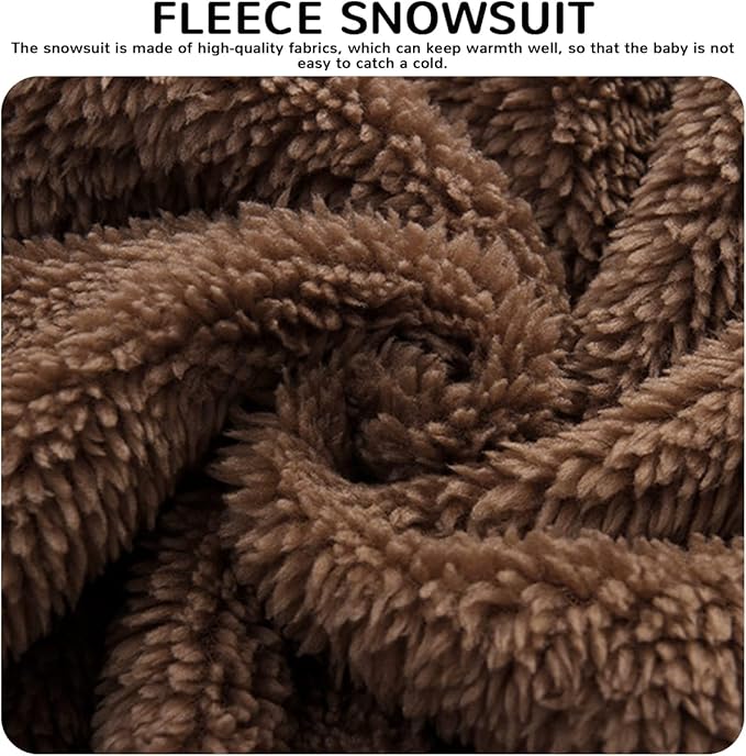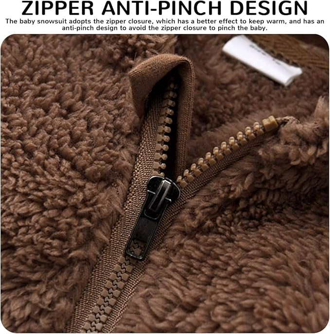 • ❤♥Design: Baby fleece snowsuit jacket warm one-piece jacket, full-cover zipper design to protect the baby from harm, one pull to the end, it is convenient for the baby to change diapers, the flip-up gloves can keep the baby warm and energetic at the same time, the bear ear one-piece hoodie makes the baby Avoid cold winds outdoors while increasing your baby's charm.