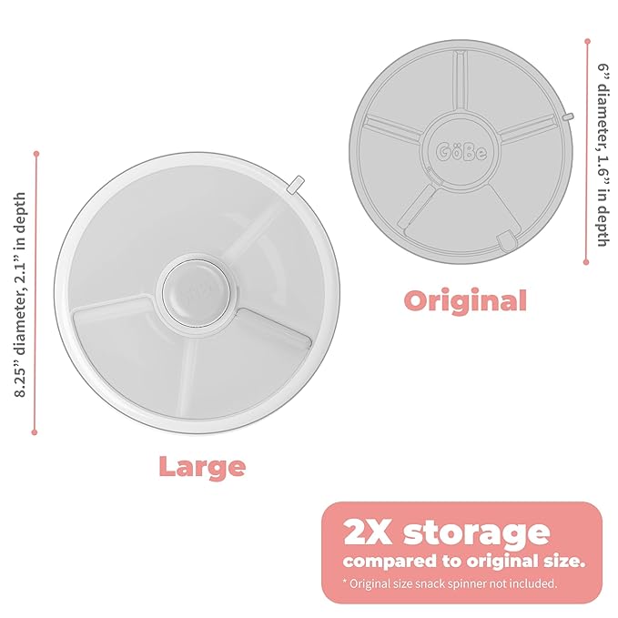 • SNACK. SPIN. REPEAT - Make snacking a breeze with 4 snacking compartments, complete with a double-wide compartment so you can fit more (including half a sandwich). Combine your snack bowls and cups into one lightweight, easy to use container! (Recommended for ages 3-10).