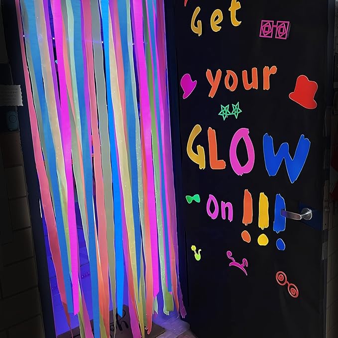• Easy to use and decorate: The Glow Party streamers with bright colors are suitable for you to make DIY decorations. They can decorate your ceiling, door, window, book shelf, porch, garden, yards and other places. They are bright under daylight and glow only under Specific UV light, which Will Bring You an Amazing and Fun Neon Party.