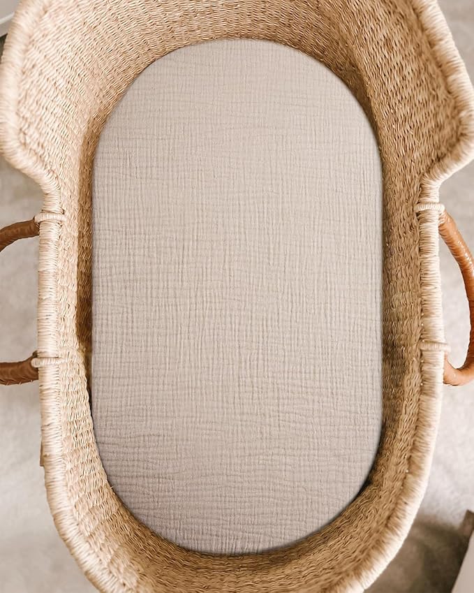 Bassinet Sheet for Baby Boy and Girl, Fitted Sheets for Rectangle, Oval, Hourglass Bassinet Mattress, Muslin Moses Basket Sheets with Neutral Style (Beige)