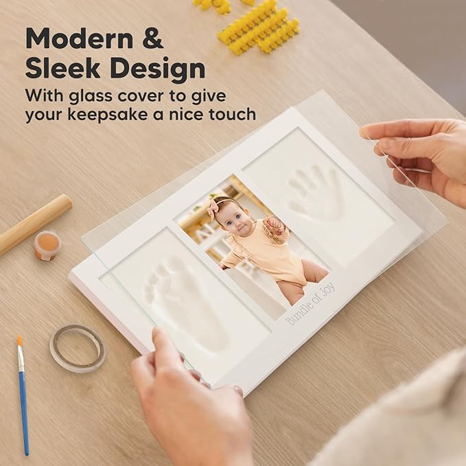• 100% Safe Food-Grade Clay - Our baby picture frame features 100% baby-safe air-dry clay, perfect for preserving your baby prints. Our premium material ensures durability, the baby hand and footprint maker will look flawless for years to come.