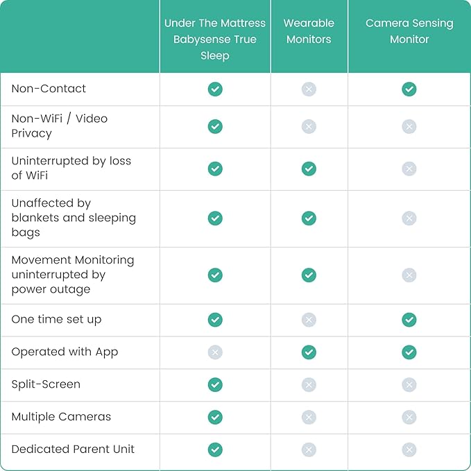 • Under-The-Mattress Movement Monitoring: Now with enhanced sensitivity - This highly sensitive non-touch device monitors a baby's micro-movements through the mattress. It includes two sensor pads to cover the entire crib area without touching the baby or disrupting the baby's sleep.