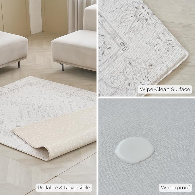 • WATERPROOF & REVERSIBLE - easy to clean with baby wipes. Two-sided for learning and interior