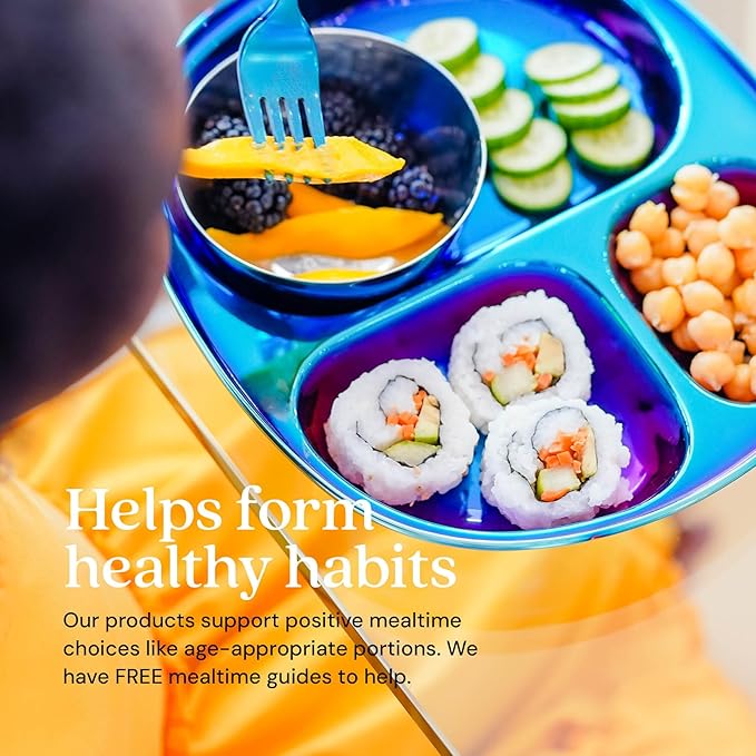 • 𝐏𝐞𝐫𝐟𝐞𝐜𝐭 𝐟𝐨𝐫 𝐁𝐚𝐥𝐚𝐧𝐜𝐞𝐝 𝐌𝐞𝐚𝐥𝐬: These kids compartment plates offer three sections (2oz, 4oz, and 12oz) that guide healthy eating with age-appropriate portions. The mirrored finish of our stainless steel plates for toddlers helps kids discover new foods while encouraging self-feeding. These divided plates support independence and routine from babies to big kids
