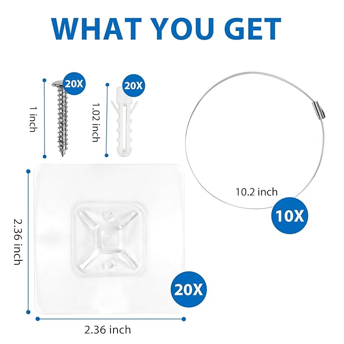 • What You Get - Each package includes 10 pairs of adhesive pads, 10 metal ties, 20 screws/anchors, and detailed user instructions for installing and removing the anchors.