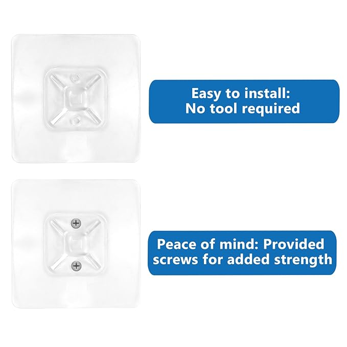 • Adhesive or Screw - Vinkqiado utilizes super strong nano-technology adhesive tape, making it incredibly easy to install without the need for drilling or tools. Additionally, it won't damage the surface of your walls or furniture. Or you can use the screw provided.
