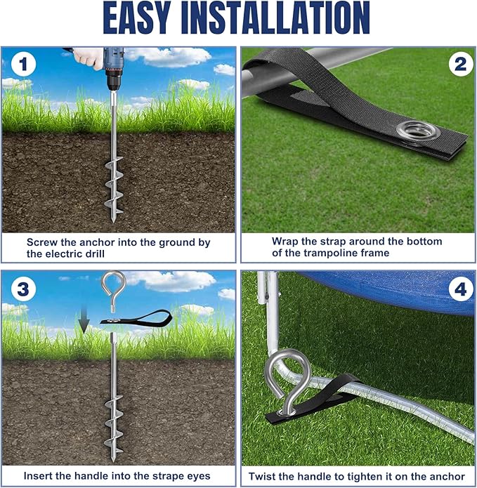 • Durable Performance: Unlike other stakes, these trampoline anchors resist deformation, corrosion, and rust, ensuring long-term, sustainable performance.