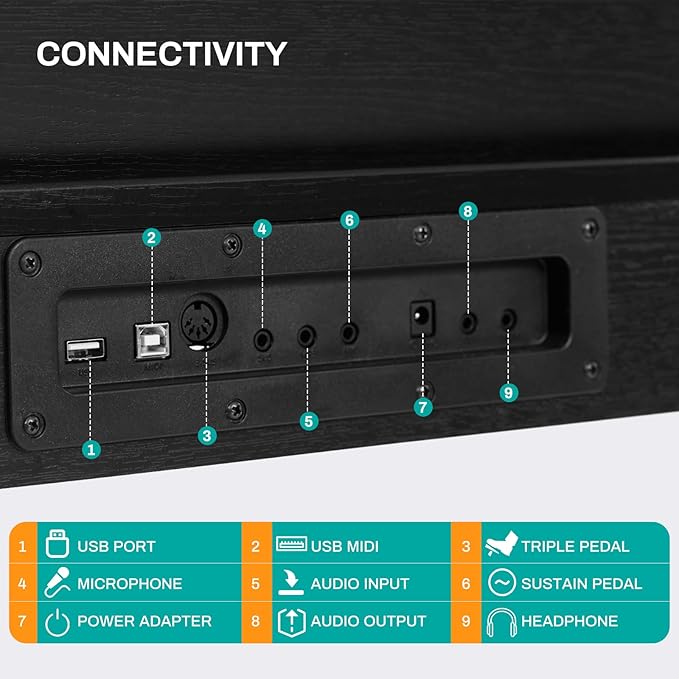 • [Powerful]: AD-X1 digital piano has great compatibility with iPad and cell phones. You can also connect a microphone with the three-pedal