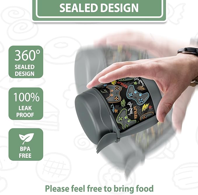 • Leak Proof Design: Feel confident that our leak-proof food jars will fit in your lunch bag without worrying about spilling messes. The insulated thermo food jar comes with a food-grade spoon for your child's convenience.