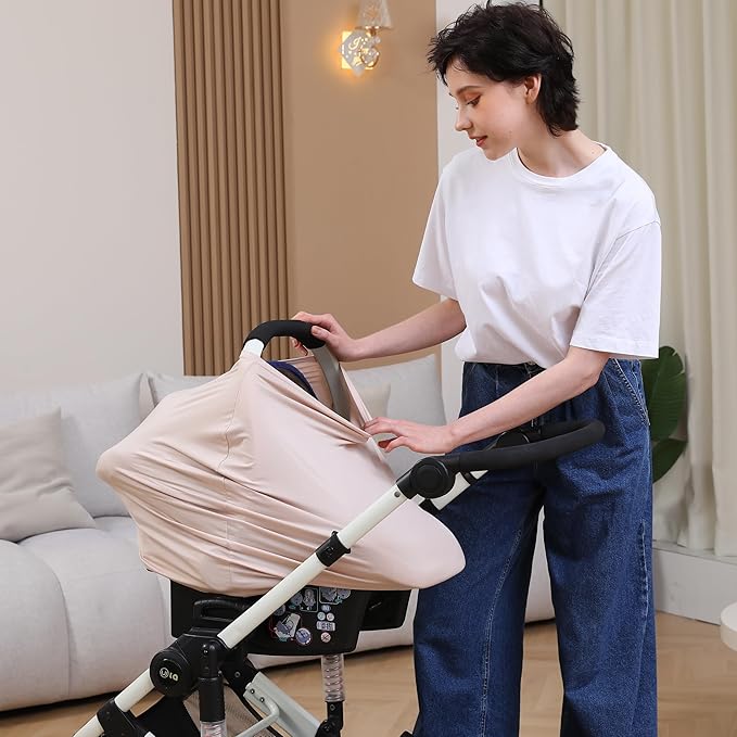 Breathable Car Seat Cover for Babies – Multi-Purpose Soft Rayon Nursing Cover for Breastfeeding, High Stretchy Infant Carseat Canopy, Stroller Cover (Smooth Rayon, Warm Natural)