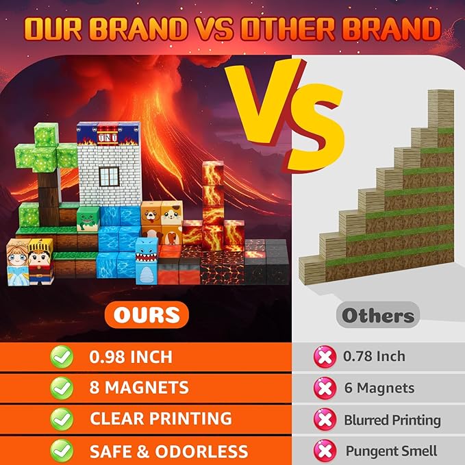 • Dinosaur Volcano Magnet World - Dinosaur volcano magnet set take our magnetic blocks on an adventure into the world of dinosaurs. Designed with a variety of uniquely patterned cubes covering different landscapes from forests to erupting volcanoes, perfect for creating epic dinosaur battles and imaginative stories. Imagine the roar of dinosaurs transporting you into an exciting world! Learn about the evolution of dinosaurs and embark on an adventure.