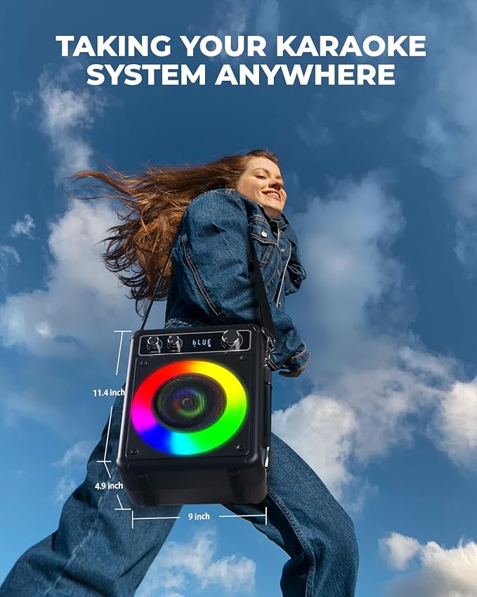• Fascinating LED Light Show: Transform any room into a concert hall with built-in LED light show. Karaoke machine for adults creates a vibrant atmosphere with LED light effects that move in time to the beat of the songs. Gather your guests and take your karaoke night to the next level with this captivating visual experience.