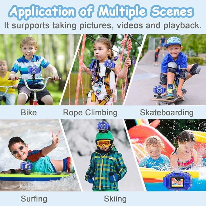 • Kids Waterproof Camera: This underwater case can provide excellent protection for camera from scratches and hit. Agoigo kids camera with the case installed, you can dive underwater up to 98ft. Perfect for swimming, surfing, diving. Important tips: Do does not open the waterproof case underwater