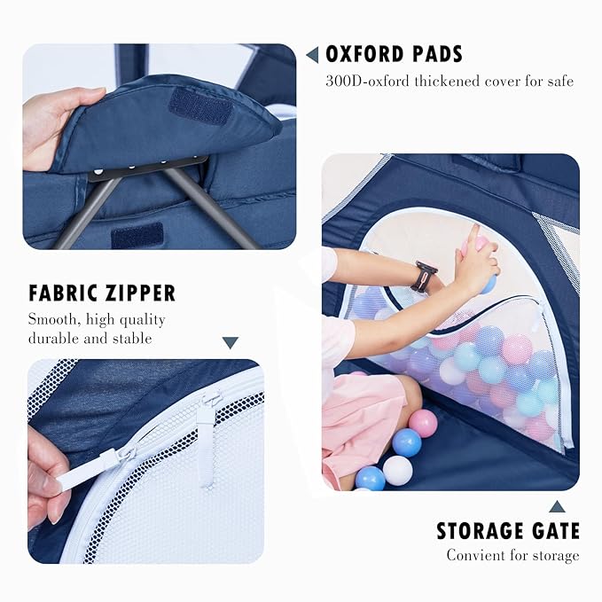 • ❤Easy to Set Up: Assembles and stows in minutes, no tools required. Playpen Includes 50 ocean balls and 2 handles for even more fun!