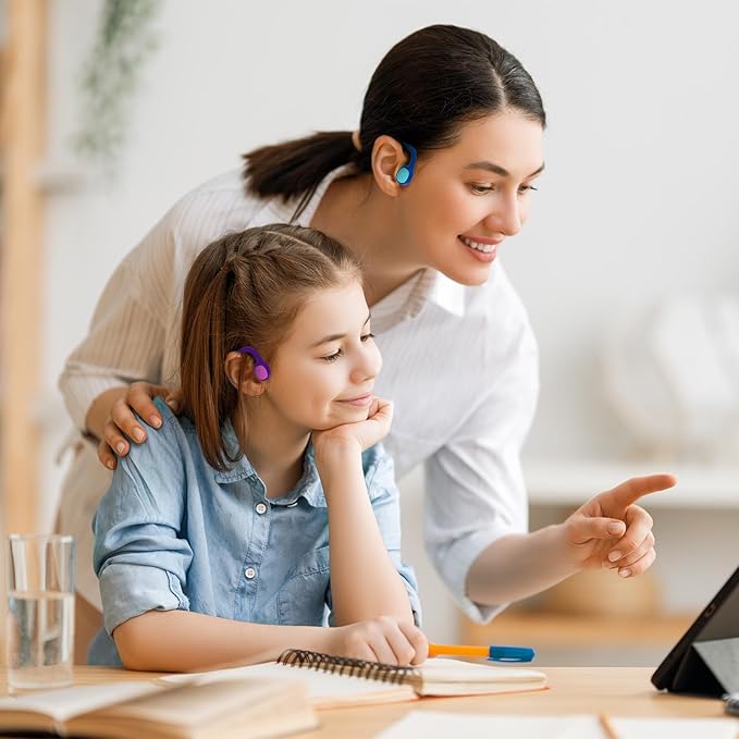 • [Ultra-Safe Design for Your Kids]: Our premium headphones for kids feature a new generation open-ear design - Air Conduction Technology. They can directional deliver premium audio without muffling kids' ears which can ensure your kids can hear surrounding noise. This special design ensure your kids enjoy unique listening experience while studying at home/school, train/running, all while avoid some dangerous situations from happening.