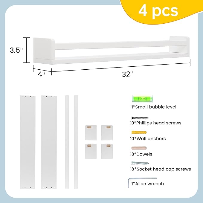 • Durable & High-Quality: Made of solid pine wood, these floating shelves are built to last. They'll provide a stylish and practical storage solution for years to come, making them an excellent addition to nursery decor and any room throughout your home