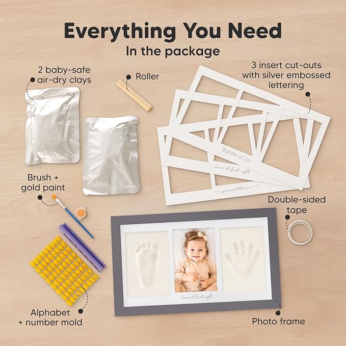 • 100% Safe Food-Grade Clay - Our baby picture frame features 100% baby-safe air-dry clay, perfect for preserving your baby prints. Our premium material ensures durability, the baby hand and footprint maker will look flawless for years to come.