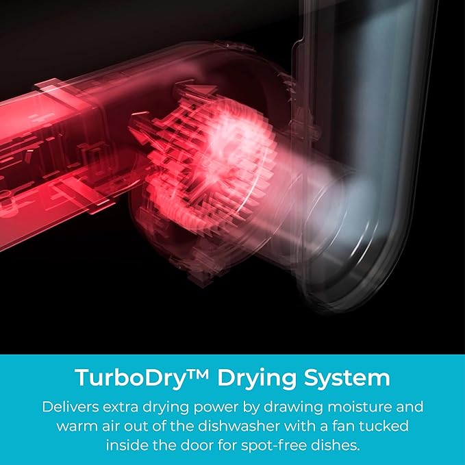 • TurboDry for Dry Dishes: A built-in fan pulls moisture and warm air out of the dishwasher while a heating element boosts drying power. Even plastics come out dry and spot-free. Ditch the dish towel