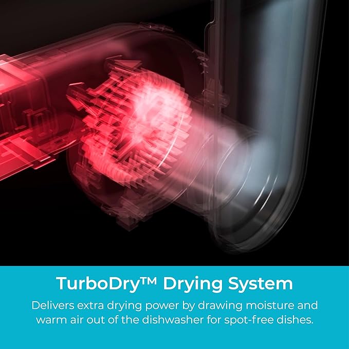 • TurboDry for Dry Dishes: A built-in fan pulls moisture and warm air out of the dishwasher while a heating element boosts drying power. Even plastics come out dry and spot-free. Ditch the dish towel