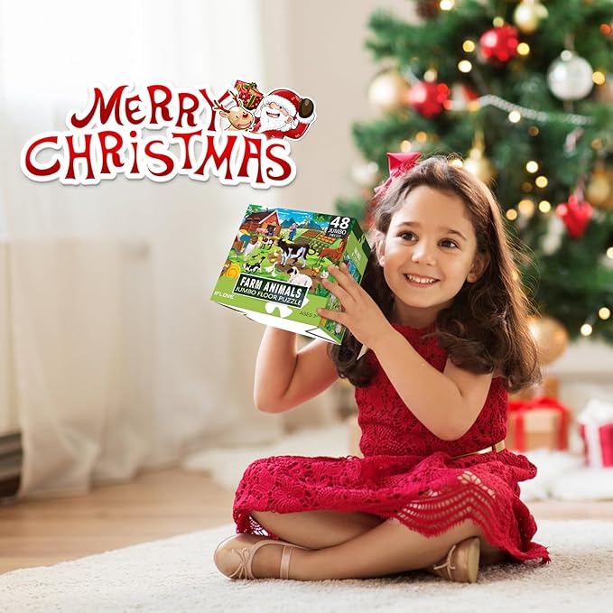 • Large 48-Piece Farm Animal Puzzle:This kids' puzzle comprises 48 jumbo floor pieces adorned with vibrant and engaging illustrations in a captivating blend of colors. The puzzle depicts a vivid and enjoyable scene of a large farm family, creating an immersive and enjoyable experience. The dynamic colors and meticulous attention to detail render it an interactive and educational toy that captivates children's interest