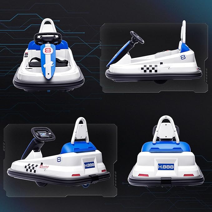 • Safety First: Equipped with EVA bumper edges, our kid bumper car ensures maximum safety for your little ones during fun-filled rides. In addition to the seatbelt, the back handle allows you to grab the car in case you need to take control.