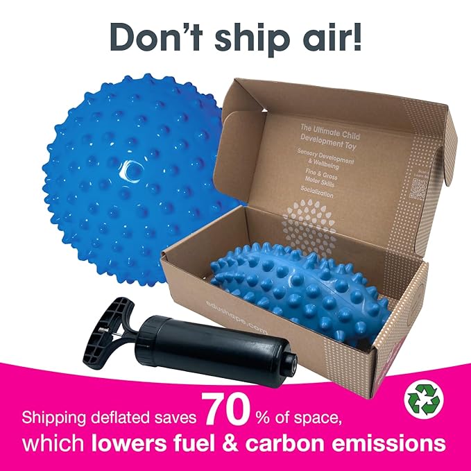 • WHAT'S INSIDE: A set includes one 7" Blue-Opaque Deflated with Pump sensory ball for toddlers 1-3. Our baby development balls come deflated but can be easily inflated via a built-in valve. Recommended for kids aged 6 months and up!