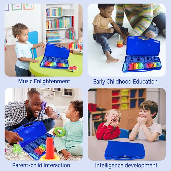 • Friendly Design - Glockenspiel is specially design for children, sound blocks with perfect tuning, Each of the 25 sound bars is elaborately made.