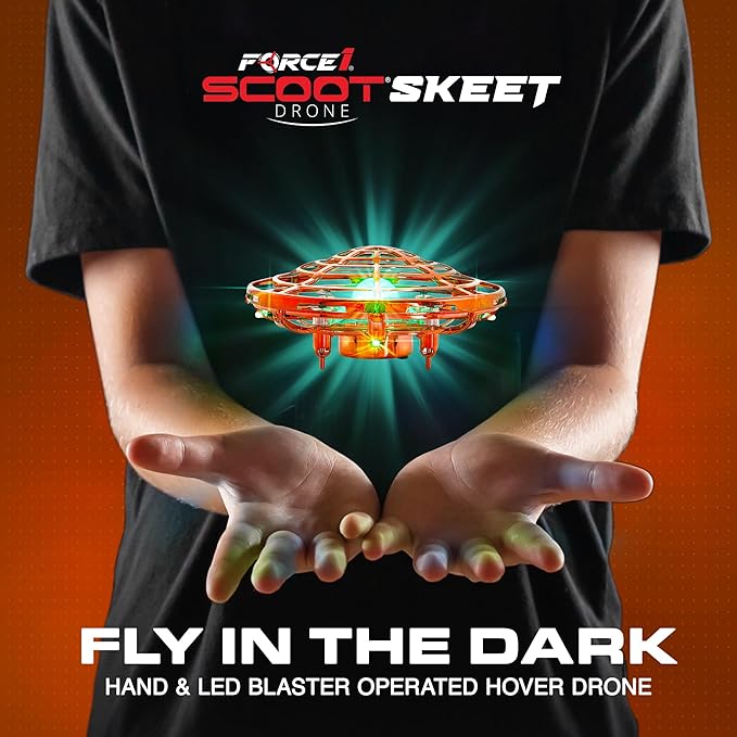 • New Drone Technology: Featuring the same patented motion sensor technology as the Original Scoot hand controlled drone for kids, the NEW Scoot Skeet series drone has special integrated motion LED sensors making it compatible with the Scoot Skeet LED light blaster (not included).