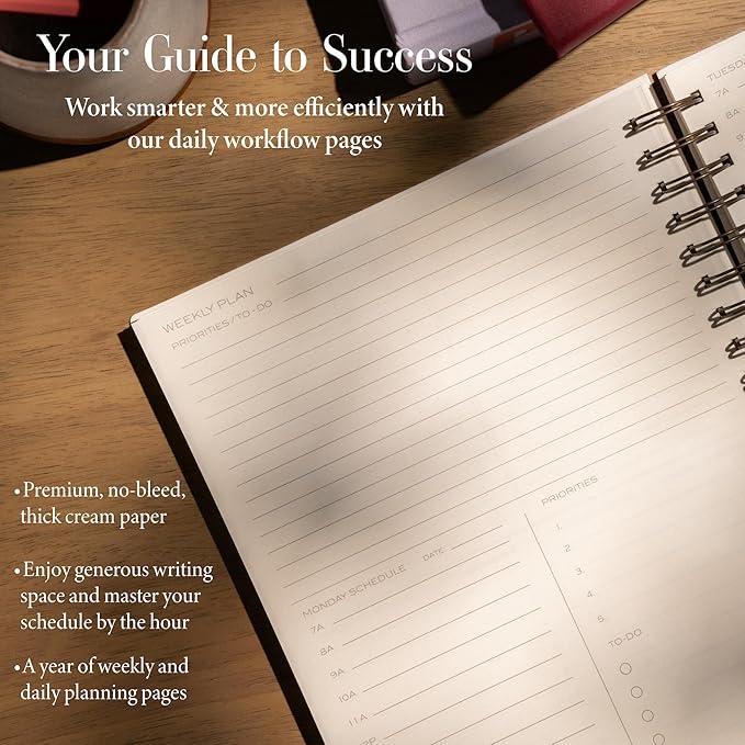 • AN EXACT SYSTEM: Our spiral bound planner is based on an exact system that carries forward long term goals & strategic planning by working out your yearly goals and dreams and then aligning those monthly, weekly & daily targets to accomplish those goals. We have designed our Daily planner 2025-2026 based on the actual successful actions of men & women who have built successful businesses & prosperous careers.