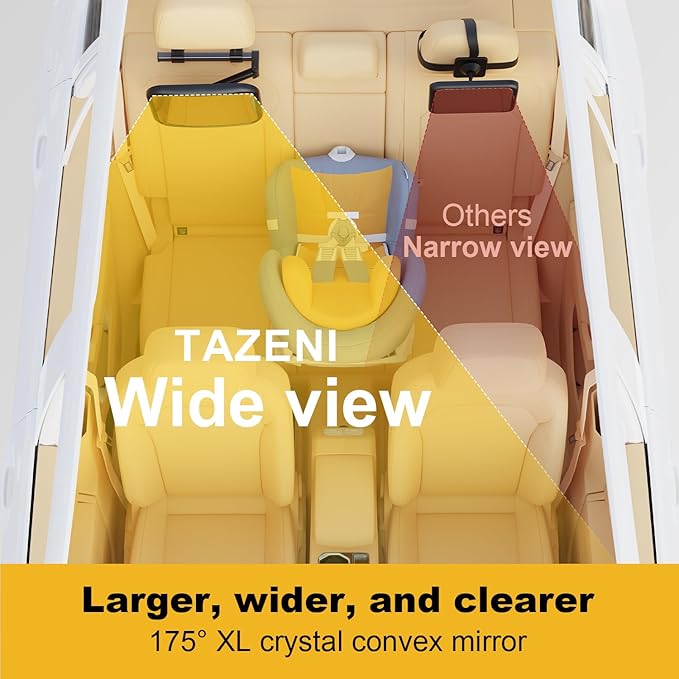 • [Ultra-clear & Wider Field of View] The baby car mirror makes it easy and clear to see your baby while driving. The car mirror for baby magnifies the baby's image with the 175° curved surface design. You don't have to look back at the baby but see everything in the back seat in the rear view mirror with just a glance. Focus on the road and drive more safely.