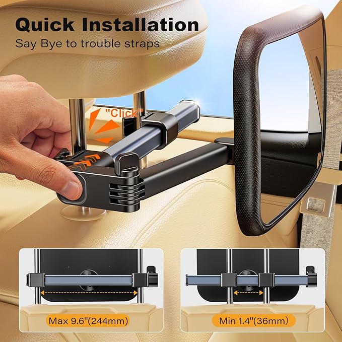 • [360° to See Baby] Our baby mirror allows you to see baby in any angles. Unlike traditional narrow single-view baby mirror, with a 180° adjustable arm and 360° rotatable ball, this baby mirror for car seat rear facing can be easily adjusted on any headrest, taking into account all aspects of the baby.