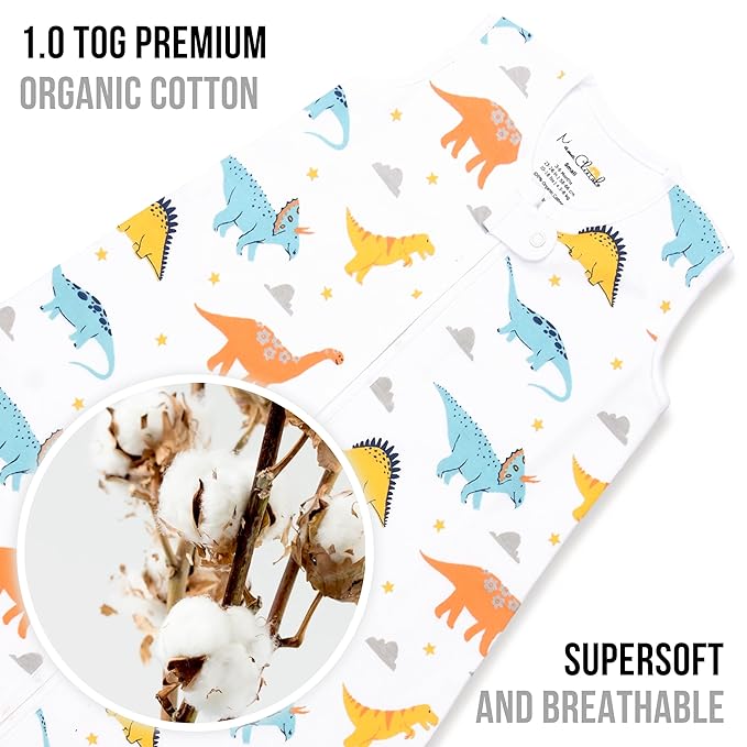 • 【DOUBLE LAYER 1.0 TOG 100% Organic Cotton】— This Baby Sleeping Bag is made of double layer premium organic cotton with a TOG rating of 1.0, which is most suitable for moderate seasons or climates, can help your baby get a peaceful, long sleep year-round - being not too hot or cold. The organic cotton interlock minimizes overheating and keeps your baby warm and comfortable.