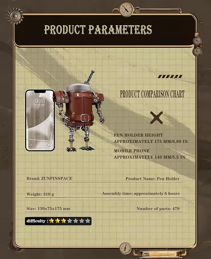 • 【Challenging 3D DIY Experience】: This "Ink Shadow Guard" metal mechanical model is composed of 479 parts, suitable for teenagers and adults aged 16 and above. Creating a set of metal models is very challenging, which may take over 4-6 hours, depending on your observation and patience. After hours of focused work and completing your own amazing craftsmanship, you will experience a strong sense of achievement and stress relief.