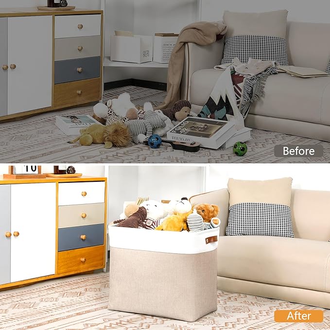 • 【Care】The fabric basket set comes with compression packing which may result in wrinkled and crumpled in long-distance transit. It can be smoothed out by steam iron.