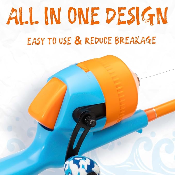• Easy to use: WIDDEN kids fishing pole and reel combo are all in one piece, which reduces the chance of breakage and makes them easy to use. The lightweight and ergonomic design, combined with the pre-wound line, makes it simple for kids to cast and reel in their own catch. The fishing line is taken up in a tight state, which can avoid the fishing line from being entangled