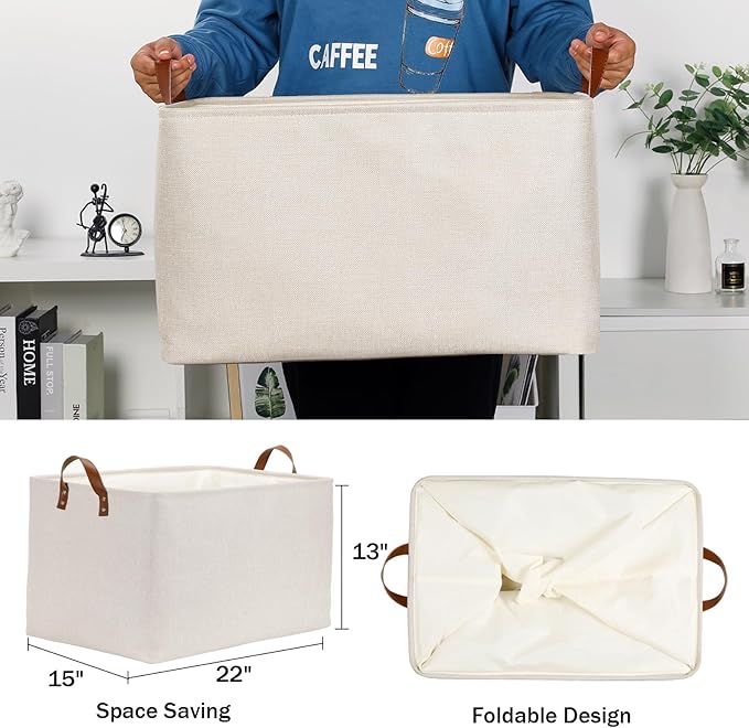 • 【Unique Design & Modern & Decorative】Set of 2 large storage baskets, dimensions(each): 22(L) x 15(W) x 13(H) inches. Fabric baskets for organizing bring you organizing convenience and a sweet home. Great for socks, underwear, books, magazines, toys, baby clothes, pet products, wipes, towels, decorations, office supplies, DVDs, and gifts. The Large Fabric baskets with neutral colors can match a lot of home styles - keeping your home nice and tidy.